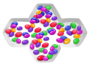 Crystal Candy | Level 25 | Immoveable blocker, maximum 3 layers. Always stationary above the board allowing movable pieces to pass freely under, including conveyor belts. A candy on an hex can be switched under the crystal of an adjacent hex successfully only if a match is made under the crystal. Crystal absorbs all effects including SFX, thus sheltering the element underneath. | Regular |