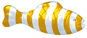Fish Roulade | Booster | A fish roulade releases special striped gummy fish that swim from one hex to another. For both the source and target hex, a layer of Jelly (which is given priority) or the layer of a blocker is removed. All the source and target hexes are chosen randomly, often many layers are removed from some hexes while other hexes may feel little impact. |